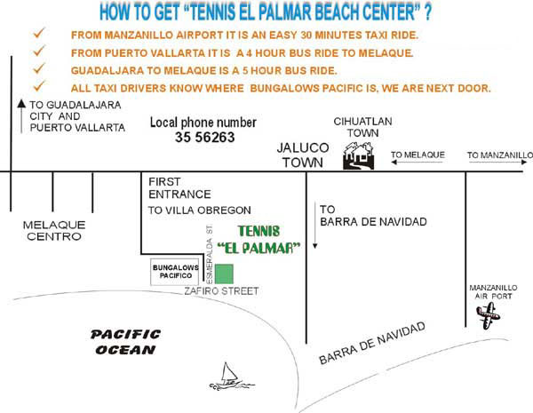 Click Here to download a printable map of how to get to the Tennis El Palmar Beach Centre from Manzanillo Airport.